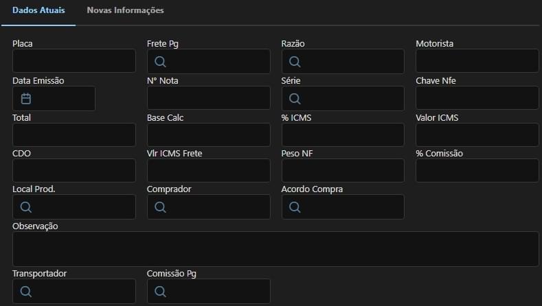 Frete Pg: Campo informativo da informação de frete pago ou não para a entrada selecionada.