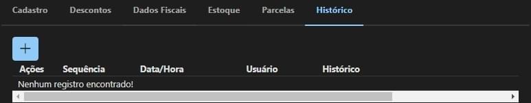 Clique no botão para adicionar um histórico à compra selecionada. A informação é preenchida