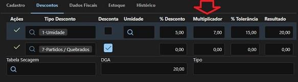 Multiplicador: Multiplicador para o tipo de desconto selecionado.