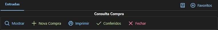 Mostrar: Visualizar a lista de compras conforme os campos informados no agrupador "Filtros". Nova Compra: Cadastrar uma nova compra.