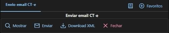 informados nas abas "Filtros" e "Configurações". Enviar: Enviar e-mails dos CT-es selecionados na lista de CT-es.