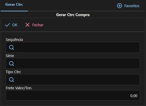 Frete Valor/Ton.: Valor de frete por tonelada a considerar na geração do CTRC.