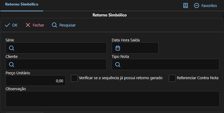 Preço Unitário: Preço unitário que será aplicado ao item na geração do retorno simbólico.