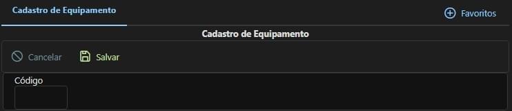 Código: Código do equipamento selecionado.