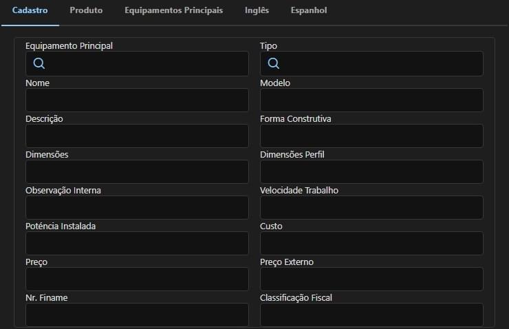 Cadastro dos equipamentos das propostas feitas pela empresa.
