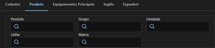Produto: Produto para o equipamento selecionado.