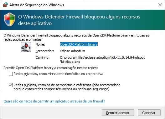 Após o início da execução do comando, é possível que o Windows® peça desbloqueio dos aplicativos
