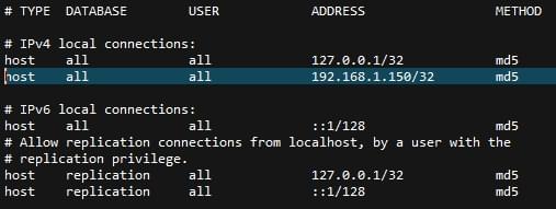 data do PostgreSQL. Vá até o final do arquivo e informe o IP. Este